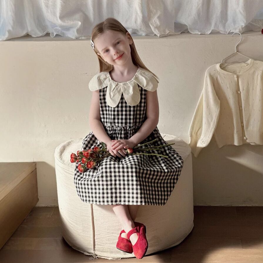 夏 ガーリー ギンガムチェック 襟