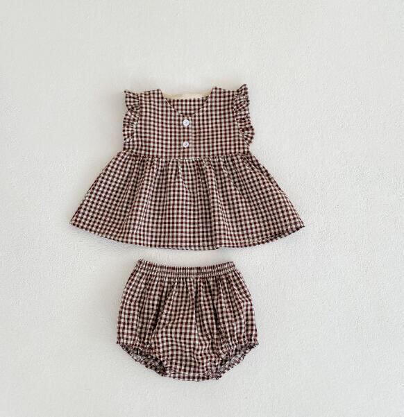 チェック ブラウス 韓国風 セットアップ 双子コーデ お揃い