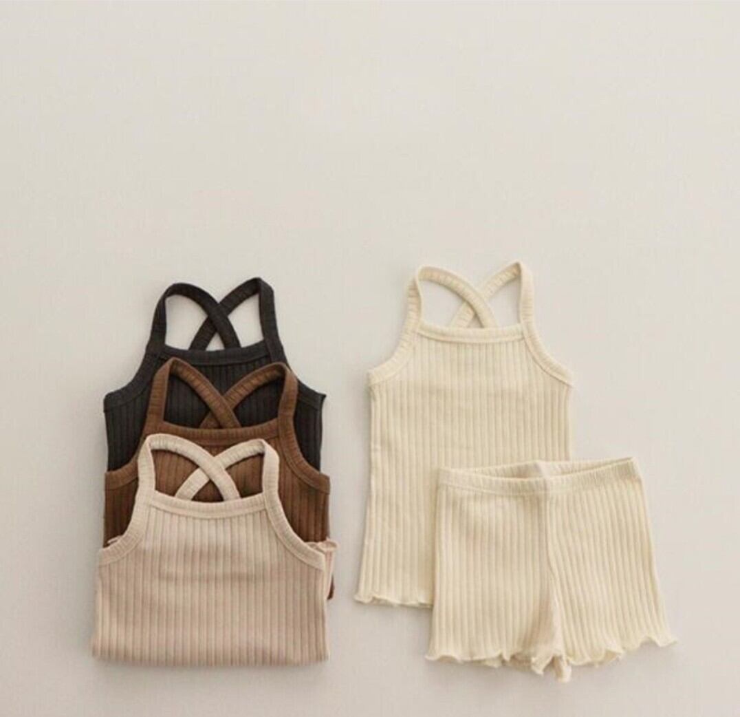 無地 シンプル ノースリーブ 半ズボン ラフ ナチュラル